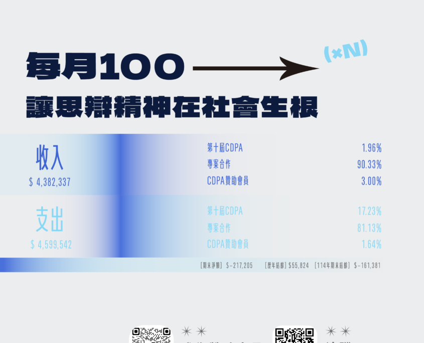 /在: 最新消息 /通過: cdpa.tw大家好,這裡是 CDPA。 CDPA 能順利走過第 11 年,要感謝每一個相信思辯價值、支持協會長期發展的贊助 […]
