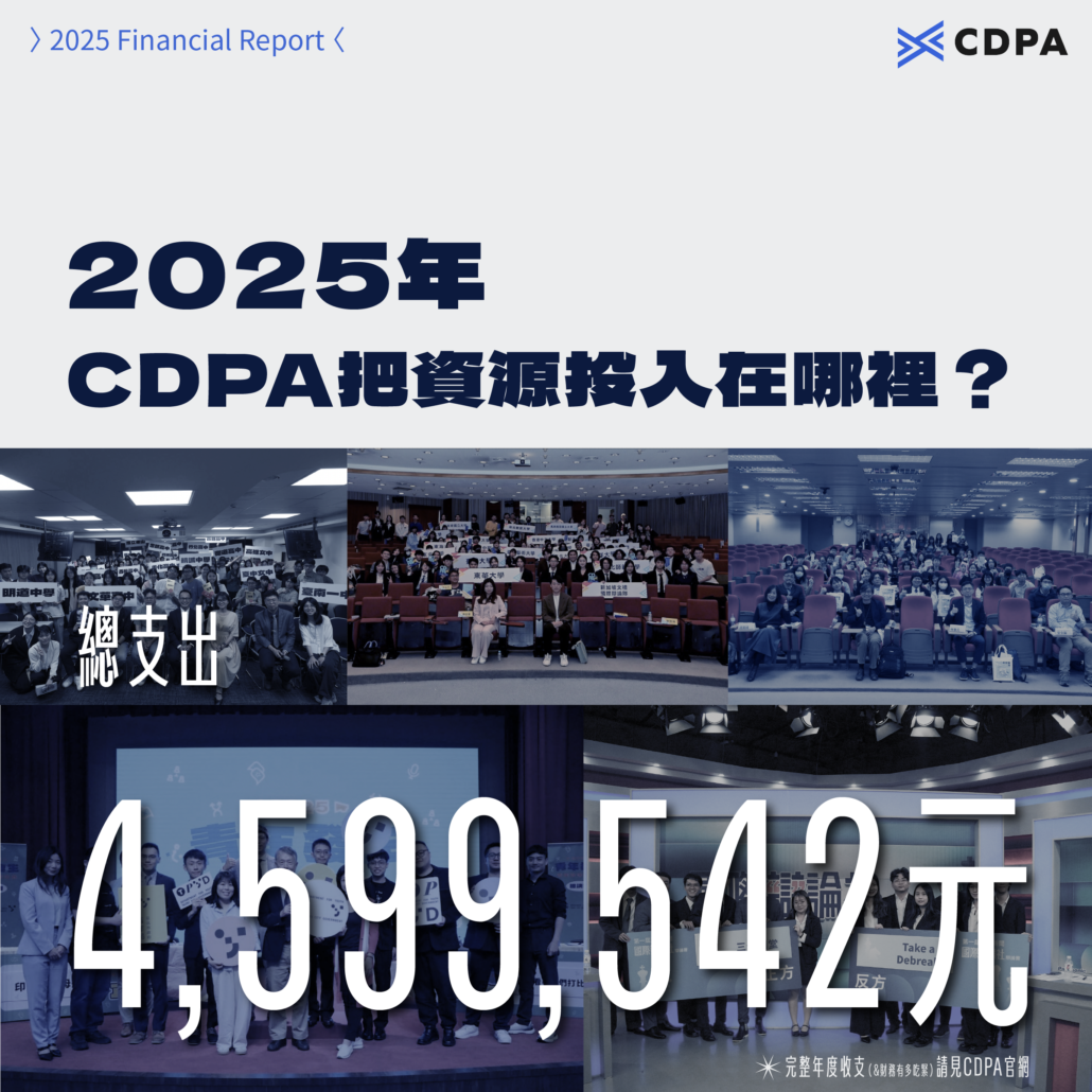 過去一年 CDPA 的總收入達到 438 萬元,總支出超過 459 萬元。